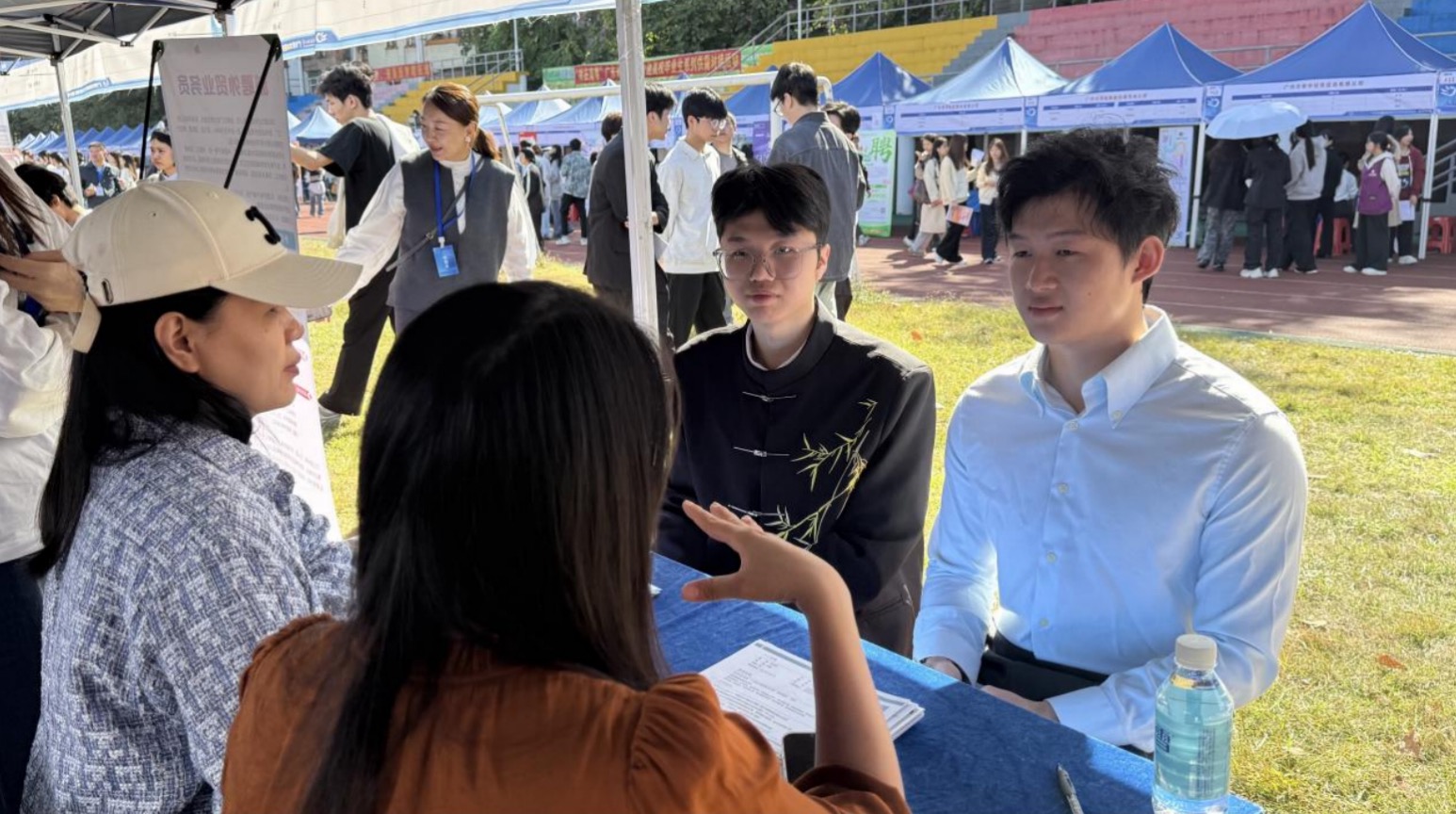 本次招聘会规模空前,汇聚564家优质企业,设立368个招聘展位,累计提供1176类岗位、11686个用人需求,吸引逾2000名应届毕业生到场求职,现场供需两旺、气氛热烈。在应用外语学院专属招聘专区,广东晶东贸易、广州太信信息科技等行业知名企业,以及广东辉马五金电器、深圳翼力方科技等优秀校友企业齐聚招贤,岗位覆盖外贸、教育、科技、物流等热门领域,重点推出外贸专员、英语教师、跨境电商运营、小语种翻译等数十类贴合市场需求的职位。